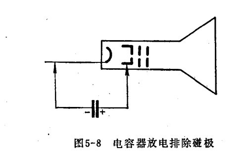 用大容量的电解电容器(如10微法以上)在直流电压上充电(如300伏),然后在相碰之两极放电,也可解决问题,下图示,电容充电时注意极性,放电时极性无关。
