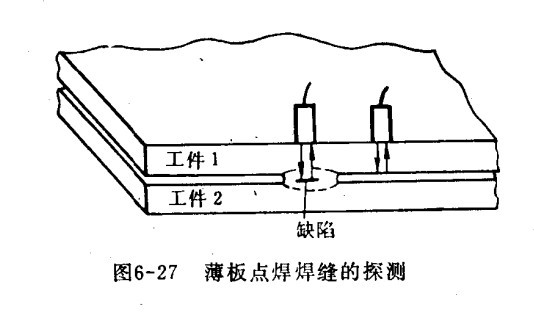 四、点焊焊缝探伤 对于薄板点焊焊缝的探伤方法,主要用探伤仪直探头。