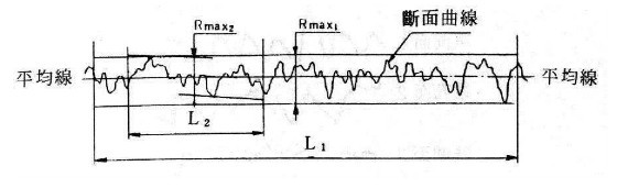 在取样长度L内最大的轮廓峰高的平均值与五个最大的轮廓谷深的平均值之和。